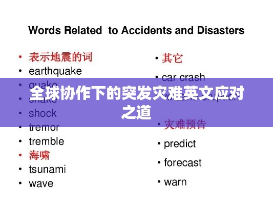 面对突发灾难,全球各国需要共同协作,共同应对,各国应加强预警系统的建设,提高应对突发灾难的能力,各国应加强救援力量的建设,提高救援效率,各国还应加强灾后重建和恢复工作的协作,共同帮助受灾地区重建家园,在这个过程中,英文作为国际交流语言,起到了重要的桥梁作用。
